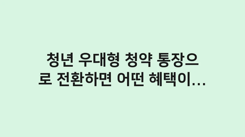 저는 청년 우대형 청약 통장이 청년들이 주거 안정과 자산 형성이라는 두 마리 토끼를 잡을 수 있는 ‘필수 금융 아이템’이라고 확신합니다. 이 글은 일반 청약 통장과 청년 우대형 통장의 금리 차이, 비과세 적용 범위, 소득공제 혜택 등 3대 핵심 혜택을 구체적으로 비교 분석합니다. 또한, 이미 일반 통장을 보유한 청년들이 전환 가입할 수 있는 자격 요건과 절차, 그리고 전환 후 이 혜택을 최대한 활용하는 전략까지 꼼꼼하게 안내해 드리겠습니다.
