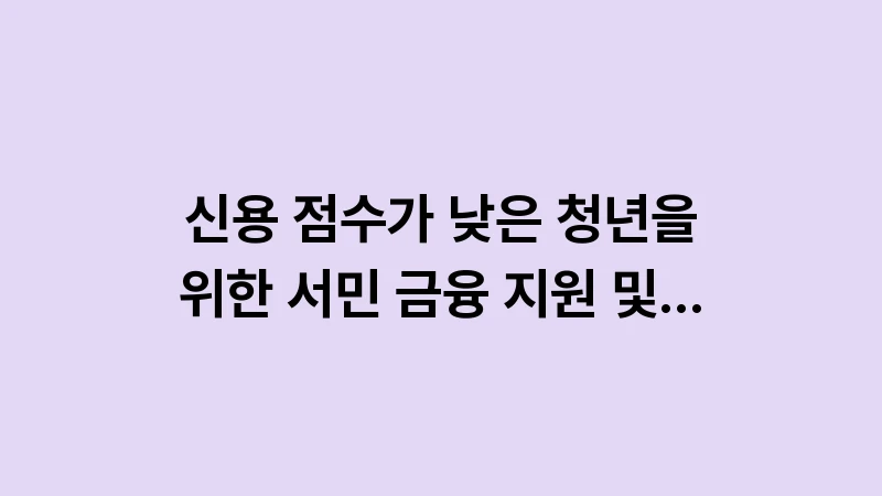 신용 점수가 낮은 청년을 위한 서민 금융 지원 및 채무 조정 제도는 금융 위기에 처한 청년들의 재기를 돕는 가장 효과적인 수단입니다. 청년 신속 채무 조정과 최저 신용자 특례 보증 등 안전한 정책들을 적극적으로 활용하여, 신용 점수를 회복하고 지속 가능한 금융 생활을 이어 나가는 든든한 발판을 마련하시길 바랍니다.